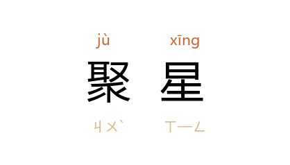 ⒈  三颗以上恒星组成的恒星系统。分普通聚星和四边形聚星两类。前者的组成星两两组成双星;后者的组成星之间的距离基本相当,可能是一种很年轻的恒星系统,如猎户座内的θ星等。