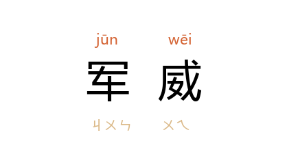 引汉 荀悦 《汉纪·武帝纪三》:“自大将军出,未曾斩一裨将,今 建 弃军,可斩以明军威。”唐 皇甫冉 《送客》诗:“旗鼓军威重,关山客路赊。”邹鲁 《中国同盟会·中国同盟会总章》:“就其所得之城镇营垒,升立国旗,宣扬军威。”