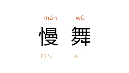 引唐 白居易 《长恨歌》:“缓歌慢舞凝丝竹,尽日君王看不足。”清 洪昇 《长生殿·舞盘》:“还有花犯,有道和,有傍拍,有间拍,有摧拍,有偷拍,多音响,皆与慢舞相生,缓歌交唱。”