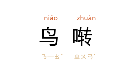 引南朝 陈 沉炯 《六甲诗》:“庚庚闻鸟囀,肃肃望鳧征。”南朝 陈后主 《上巳玄圃宣猷嘉辰禊酌各赋六韵》:“峯幽来鸟囀,洲横拥浪波。”唐 裴迪 《游感化寺昙兴上人山院》诗:“鸟囀深林里,心閒落照前。”