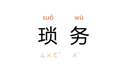引鲁迅 《书信集·致姚克》:“蒙见访的那天,即得惠函,因为琐务,未即奉答为歉。”胡鄂公 《北京实录》:“季高 喜远谋而不耐琐务。”