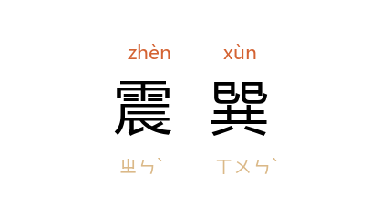 ⒈ 《易》六十四卦中的二卦名。《易·说卦》:“震一索而得男,故谓之长男。巽一索而得女,故谓之长女。”后因以“震巽”指代男女、夫妻。