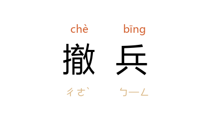 ⒈ 退兵,将军队从驻守地或战斗地区撤走。