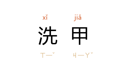 引《宋史·乐志十六》:“覆盂连瀚海,洗甲挽天河。”清 陆以湉 《冷庐杂识·疏表杰作》:“波澄海国,看王师洗甲而还。”《花月痕》第四八回:“剑秋、小岑 原是鋭意洗甲 长江,无奈 金陵 气数未尽,却钻出五个妖妇来。”