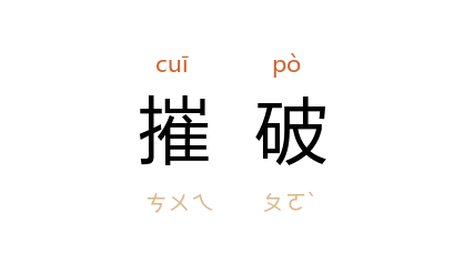 引《后汉书·伏湛传》:“大肜、高胡 望旗消靡, 铁脛、五校 莫不摧破。”唐 韩愈 《黄家贼事宜状》:“亦缘见贼未屯聚之时,将谓单弱,立可摧破。”《明史·韩林儿传》:“长吏闻贼来,輒弃城遁,以故所至无不摧破。”