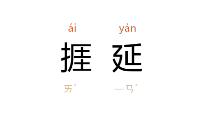 如:「他没有解决事情的诚意,只是到处找借口挨延。」
