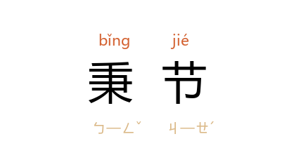 引宋 欧阳修 《武恭王公神道碑》:“秉节治戎,出征入卫。”明 杨柔胜 《玉环记·延赏庆寿》:“秉节传旌承圣宠,心存一点丹衷。”