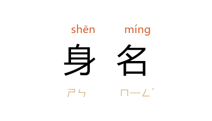 引南朝 宋 谢灵运 《游山》诗:“身名竟谁辩,图史终磨灭。”唐 白居易 《妻初授邑号告身》诗:“倚得身名便慵墯,日高犹睡緑窗中。”清 秋瑾 《敬告姊妹们》:“智识也长了,见闻也广了,学问也高了,身名是一日一日的进步了。”
