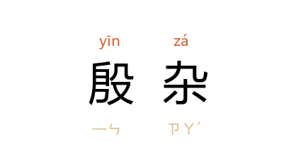 引《晋书·石勒载记上》:“风俗殷杂,须贤望以绥之。”《魏书·世宗纪》:“京师百司,僚局殷杂,官有闲长者,亦同此例。苟非称要,悉从蠲省。”隋 牛弘 《请开献书之路表》:“士民殷杂,求访难知。”