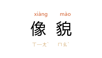 引宋 陈鹄 《耆旧续闻》卷七:“一日, 曾 往祠下遍閲,无女子像貌。”清 孙枝蔚 《题方尔止四壬子图》诗:“像貌兼求画里传,丹青无如戴苍好。”郁达夫 《薄奠》:“死了之后,她还不晓得,直到第二天的傍晚,由拉车的同伴认出了他的象貌,才跑回来告诉她。”