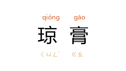 引晋 王嘉 《拾遗记·唐尧》:“﹝重明之鸟﹞能搏逐猛兽虎狼,使妖灾羣恶不能为害。飴以琼膏,或一岁数来,或数岁不至。”南朝 宋 鲍照 《芙蓉赋》:“润 蓬山 之琼膏,辉 葱河 之银烛。”