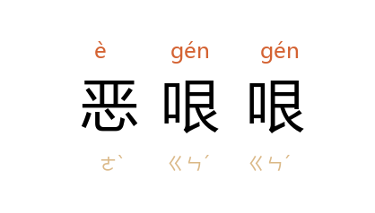 引《薛仁贵·第二折》:「则见他恶哏哏的公吏两边排,则除是南海救苦难观自在。」《对玉梳·第一折》:「常则是恶哏哏紧掿著条黄桑棍,端的待打杀卧麒麟。」