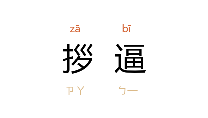 例如:「现实生活的拶逼,几乎使他喘不过气来。」