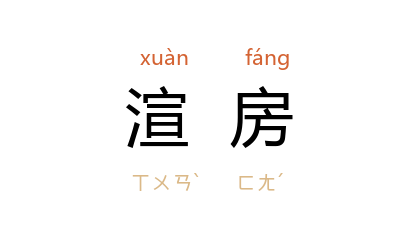 引元·李寿卿《度柳翠·第二折》:「你不向野塘内三眠,偏来渲房里宿。」元·汤式〈哨遍·圣遍飞龙当日套〉:「这壁厢酒肆里笙歌聒耳来,那壁厢渲房中麝兰扑鼻吹。」