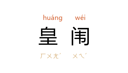 引晋 傅咸 《赠何劭王济》诗:“赫赫大 晋 朝,明明闢皇闈。”《宋书·乐志二》:“鼓鐘震天区,礼容塞皇闈。”唐 李商隐 《送千牛李将军赴阙》诗:“丹陛祥烟灭,皇闈杀气横。”宋 丁谓 《丁晋公谈录》:“物见於皇城内,皇闈外,王宫之中。”