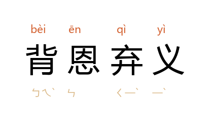 引汉 桓宽 《盐铁论·未通》:“反以身劳民,民犹背恩弃义而远流亡。”亦作“背恩弃义”。 管桦 《关于<暴风雨之夜>的复信》:“反之,丢掉革命传统,对人民背恩弃义,一阔脸就变,骑在人民头上作威作福,便为人民所诅咒了。”
