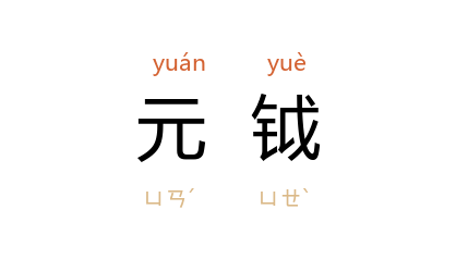⒈ 即玄钺。古代兵器。铁斧。 唐 苏鹗 《苏氏演义》卷下:“铁斧,元鉞也。诸公王得建之。