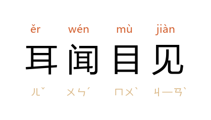 ⒈ 亲自看到、听到。北齐·颜之推也作「目睹耳闻」、「目击耳闻」、「目见耳闻」、「耳闻目睹」、「耳闻目击」。