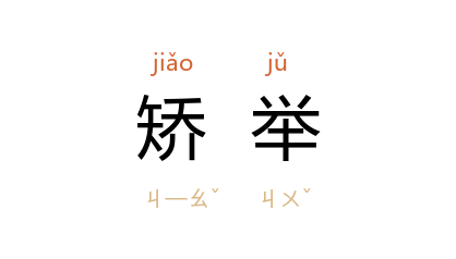 引《左传·桓公六年》:“今民馁而君逞欲,祝史矫举以祭,臣不知其可也。”杜预 注:“诈称功德,以欺鬼神也。”唐 颜真卿 《谢兼御史大夫表》:“况列曹尚书,古之常伯,如天之有斗,岂易其人?昨以表辞,非敢矫举。”《明史·丘禾嘉传》:“廷议 大凌 荒远不当城,撤班军赴 蓟,责抚镇矫举,令回奏。”