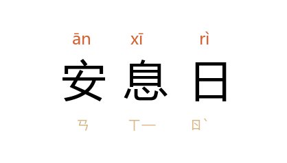 ⒈ 犹太教、基督教每周一次的圣日,教徒在该日停止工作,礼拜上帝。犹太教根据《圣经·创世记》关于上帝在六日内创造天地万物,第七日(星期五日落至星期六日落)休息的记载,定该日为安息日。基督教则以星期日为安息日。