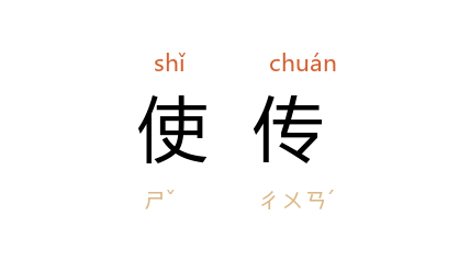 引宋 陆游 《谢明堂赦表》:“臣适乘使传,远在遐陬。”宋 陆游 《天申节贺表》:“臣方驰使传,阻缀朝班。”