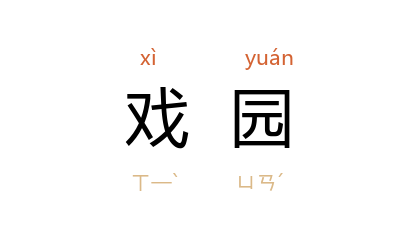 引《儿女英雄传》第三二回:“我见城外头有好几处戏园子呢。”《老残游记》第二回:“他就常到戏园里看戏,所有什么西皮、二簧、梆子腔等唱,一听就会。”巴金 《家》八:“收票的人告诉他们说这跟普通戏园不同,不买票就不能看戏。”