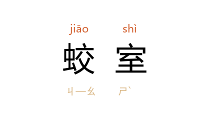 引唐 孟浩然 《永嘉上浦馆逢张八子容》诗:“廨宇邻蛟室,人烟接岛夷。”唐 杜甫 《过洞庭湖》诗:“蛟室围青草,龙堆拥白沙。”明 姚士粦 《见只编》卷上:“戚少保 平 兴化 贼,所获金银悉以充餉,重犒诸军,其他锦綺书玩刀槊甲胄尚有数船,过此亦为风所破,尽输蛟室。”