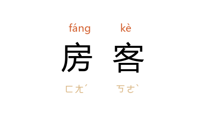 引夏衍 《上海屋檐下》人物表:“黄家楣 --亭子间房客。”邹韬奋 《萍踪寄语》二七:“她还得做二房东以勉强维持自己的生活,租了六个房客。”