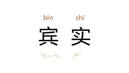 ⒉ 语本《庄子·逍遥游》:“名者,实之宾也。”后即以“宾实”谓名声与事功相称。
