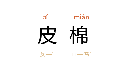 ⒈ 棉花轧去种子后所得的棉纤维部分,未经进一步加工的叫“皮棉”。