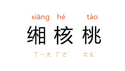 引《西京杂记》卷一:“桃十:秦桃、榹桃、緗核桃。”亦省作“緗桃”。 北魏 贾思勰 《齐民要术·种桃柰》:“《西京杂记》曰:‘核桃、樱桃、緗桃。’”宋 陈允平 《恋绣衾》词:“緗桃红浅柳褪黄。燕初来、宫漏渐长。”清 纳兰性德 《忆秦娥》词:“吹开吹谢东风倦,緗桃自惜红颜变。”