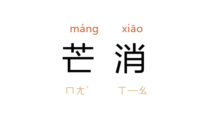 ⒈ 亦作“芒硝”。即硫酸纳。多产于含盐卤的湖泽地带。工业上用于制造玻璃、苏打等。中医学上称为“朴消”,用于治疗肠胃实热积滞、大便燥结、痰热壅积等症。
