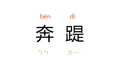一说,奔踶犹奔驰。见 清 王念孙 《读书杂志·汉书十六》“连语”。 《新唐书·齐映传》:“马奔踶,不过伤臣;捨之,或犯清蹕,臣虽死不足偿责。”