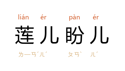 引元 杨暹 《刘行首》第二折:“莲儿盼儿,説与你姐姐梳妆打扮了,衙门里唤你官身哩!”元 无名氏 《渔樵记》第二折:“莲儿盼儿……相公来家也,接待相公!”