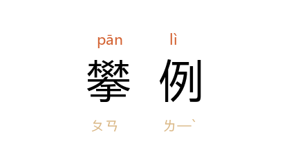引《大宋宣和遗事·亨集》:「徽宗见了此词,大悦,不许后人攀例,赐盏与之。」元·马致远《汉宫秋·第一折》:「你是必悄声儿接驾,我则怕六宫人攀例拨琵琶。」