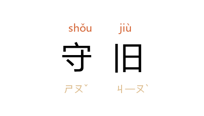 ⒈ 拘泥于旧的看法或做法而不愿改变。