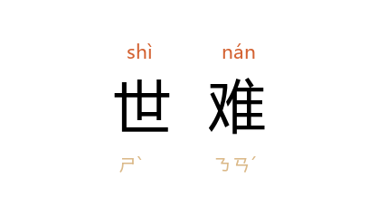 引《三国志·蜀志·刘焉传》:“焉 内求 交阯 牧,欲避世难。”《周书·周惠达传》:“尝使至 洛,魏孝武 与 惠达 语及世难。”唐 卢纶 《长安春望》诗:“谁念为儒逢世难,独将衰鬢客 秦 关。”明 刘基 《次韵和刘彦箕<忆山中>篇》:“世难有身空自累,诗成无鴈倩谁将?”