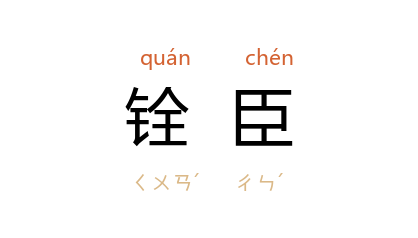 引明 袁宏道 《送观察侯公序》:“今諫官忧釜鬲,銓臣忧滞薪,卿寺具瞻仰屋而已。”明 沉德符 《野获编·内阁三·太宰推内阁》:“比有旨再推阁臣,则銓臣为政, 陆 於会推疏中列堪任者数人,以己名居首,俱人望也。”