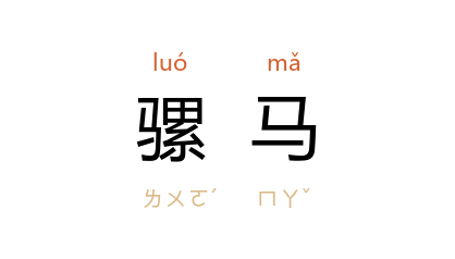 ⒈ 动物名。脊椎动物哺乳纲。由母的蒙古马和公的驴马交配而成,力大粗食,鸣声似驴,能负重行远,无繁殖能力。