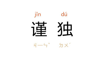 引宋 张栻 《与曾节夫抚干书》:“《中庸》谨独,《大学》诚意,乃是下工夫要切处,不可悠悠放过也。”元 戴良 《存省斋箴》:“惟 子思子,深閔斯世,戒惧谨独,提纲以示。”清 陈仪 《李封君七十寿序》:“谨独以居,抱一以游,故春秋日高,而有婴孺子色,先生可谓闻道者也。”
