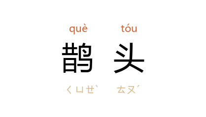 引《宋书·邓琬传》:“信未报, 琬 闻 子元 停 鹊头 不进,遣数百人劫迎之。”南朝 梁武帝 《孝思赋》序:“途次 定陵,船又损坏,于时门宾 周仲连 为 鹊头 戍主,借得一舸,奔波兼行,屡经危险,仅而获济。”