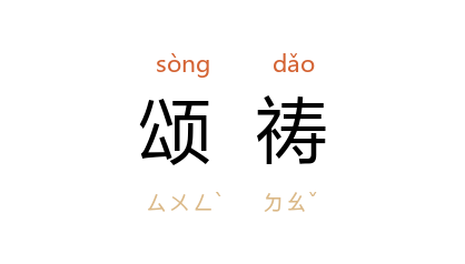 引语出《礼记·檀弓下》:“善颂善祷。”孔颖达 疏:“颂者,美盛德之形容;祷者,求福以自辅也。”明 范濂 《云间据目抄》卷三:“桥边有 关帝 庙,颇赫奕,故一时居民,皆归功颂祷云。”李大钊 《“今”与“古”》:“我们惟有讴歌现代,颂祷今人,以今世为未来新时代的基础。”