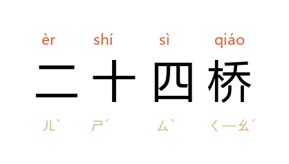 ⒈ 位于江苏省江都县西门外的名胜。祝穆方舆胜览谓桥有二十四,隋置,桥名多废,已不可考。李斗《扬州画舫录》则谓二十四乃桥名,相传古有二十四美人吹箫于此,故名。