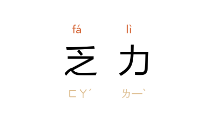 引鲁迅 《二心集·我们要批评家》:“扭得大家乏力了,这才放开了手。”胡也频 《到莫斯科去》:“当开往 天津 的特别慢车开走之后,那另一辆特别慢车便乏力地开到了。”