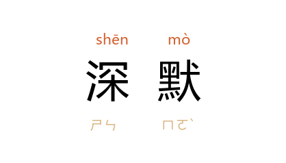 引《南史·魏纪四·明帝》:“﹝帝﹞善风仪,美容貌,临朝深默,端严若神,有人君之量矣。”明 李东阳 《送乔生宇归乐平》诗:“吾生好讲学,久矣抱深默。”蒋光慈 《鸭绿江上·弟兄夜话》:“江霞 看看路两边的景物,时而对夕阳唏嘘几下,时而低头做深默的幻想。”