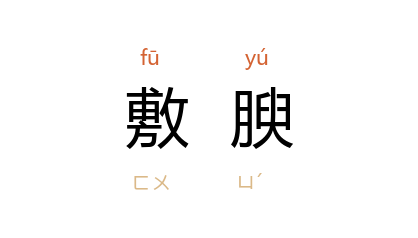 引南朝 宋 鲍照 《拟<行路难>》之五:“人生苦多欢乐少,意气敷腴在盛年。”唐 杜甫 《遣怀》诗:“忆与 高 李 辈,论交入酒壚,两公壮藻思,得我色敷腴。”仇兆鳌 注:“敷腴,喜悦之色。”宋 苏轼 《程德孺惠海中柏石兼辱佳篇辄复和谢》:“嵐薰瘴染却敷腴,笑饮贪泉独继 吴。”