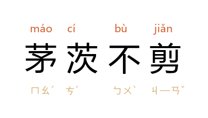 引《韩非子·五蠹》:「尧之王天下也,茅茨不剪,采椽不斲。」《大宋宣和遗事·亨集》:「便如唐尧土阶三尺,茅茨不剪,夏、商躬耕稼穑;周公吐哺待贤。」
