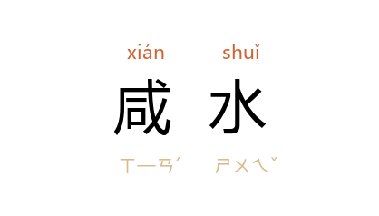 引明 李时珍 《本草纲目·水二·井泉水》:“雪水洗目而赤退,咸水濯肌而疮乾。”《官场现形记》第七回:“另外几样酒是:勃兰地、魏司格、红酒、巴德、香檳,外带甜水、咸水。”胡万春 《生长在黄浦江边的人》:“而现在是在海里,是咸水,压力大,因此减压站减压时间不相适应,必须要摸索出新的减压标准时间。”