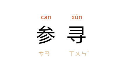 引唐 韩愈 《游青龙寺赠崔大补阙》诗:“由来钝騃寡参寻,况是儒官饱闲散。”宋 秦观 《上巳日诏赐宴集》诗之二:“宜秋门 外喜参寻,豪竹哀丝发妙音。”明 李贽 《答李见罗先生书》:“每念才弱质单,独力难就,恐遂为门下鄙弃,故往往极意参寻,多方选胜,冀或有以赞我者,而詎意学者之病又尽与某相类耶!”赵朴初 《菩萨蛮》词:“我来今四度,没个参寻处。”