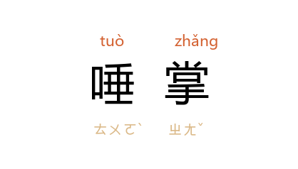 引《后汉书·公孙瓒传》“当此之时,谓天下指麾可定” 李贤 注引 晋 司马彪 《九州春秋》:“瓚 曰:‘始天下兵起,我谓唾掌而决。’”《魏书·路思令传》:“得其人也,六合唾掌可清;失其人也, 三河 方为战地。”《新唐书·儒学传下·陈京》:“陛下復用之,姦贼唾掌復兴。”明 徐霖 《绣襦记·正学求君》:“看槐黄举子正忙,管此去功名唾掌。”